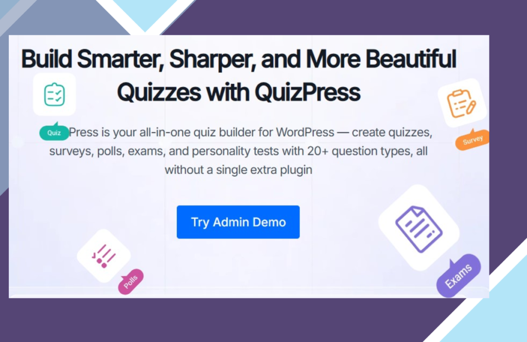 Create engaging and interactive quizzes, surveys, and polls effortlessly with QuizPress Pro. Say goodbye to coding and hello to easy customization and seamless integration with WordPress. Elevate your website with interactive content that keeps your audience captivated.